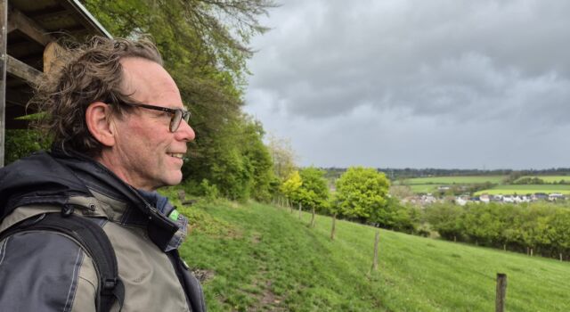 Terwijl we de berg afdalen is er een magnifiek uitzicht over Zuid-Limburg. Ik schrik wel van een enorme oranje heuvel, waar de begroeiing is doodgespoten met glyfosaat. Juridisch is dat in orde, maar met zoveel wetenschappers die waarschuwen tegen het gebruik van het verdelgingsmiddel en met zoveel nare ervaringen uit het verleden (waarbij het effect in het vrije veld van een ‘gewasbeschermend middel’ totaal afweek van wat de test in het laboratorium uitwees), zouden we andere keuzes kunnen maken.