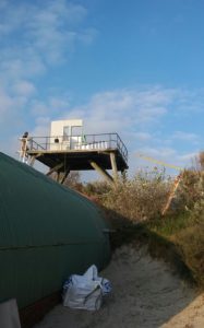 De uitkijktoren op Rottumerplaat wordt deze week afgebroken. Het kenmerkende bouwwerk met z’n spitse groenwitte punt is door weersinvloeden en zwam zo erg aangetast dat hij de veiligheidstoets dit voorjaar niet meer doorstond. Onze vogelwachters Bart en Doortje en hun collega’s hebben afgelopen broedseizoen al gebruik gemaakt van een tijdelijke houten toren, die voorlopig nog even blijft staan.