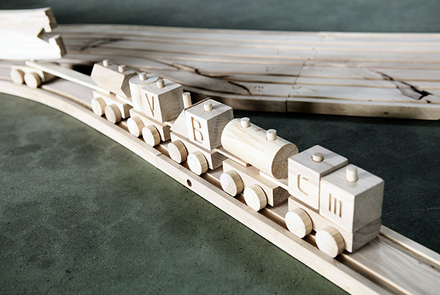 Tree Track is eigenlijk een verhaal, zoals al haar werk dat is. Wie de ruimte binnenkomt waar Tree Track tentoongesteld is, ziet een boomvorm, van wortelgestel tot kruin, opgebouwd uit houten treinrails. Talloze treintjes in tweerichtingsverkeer, verbeelden de sapstromen van de boom. Dat is al intrigerend genoeg maar het echte verhaal komt nog.