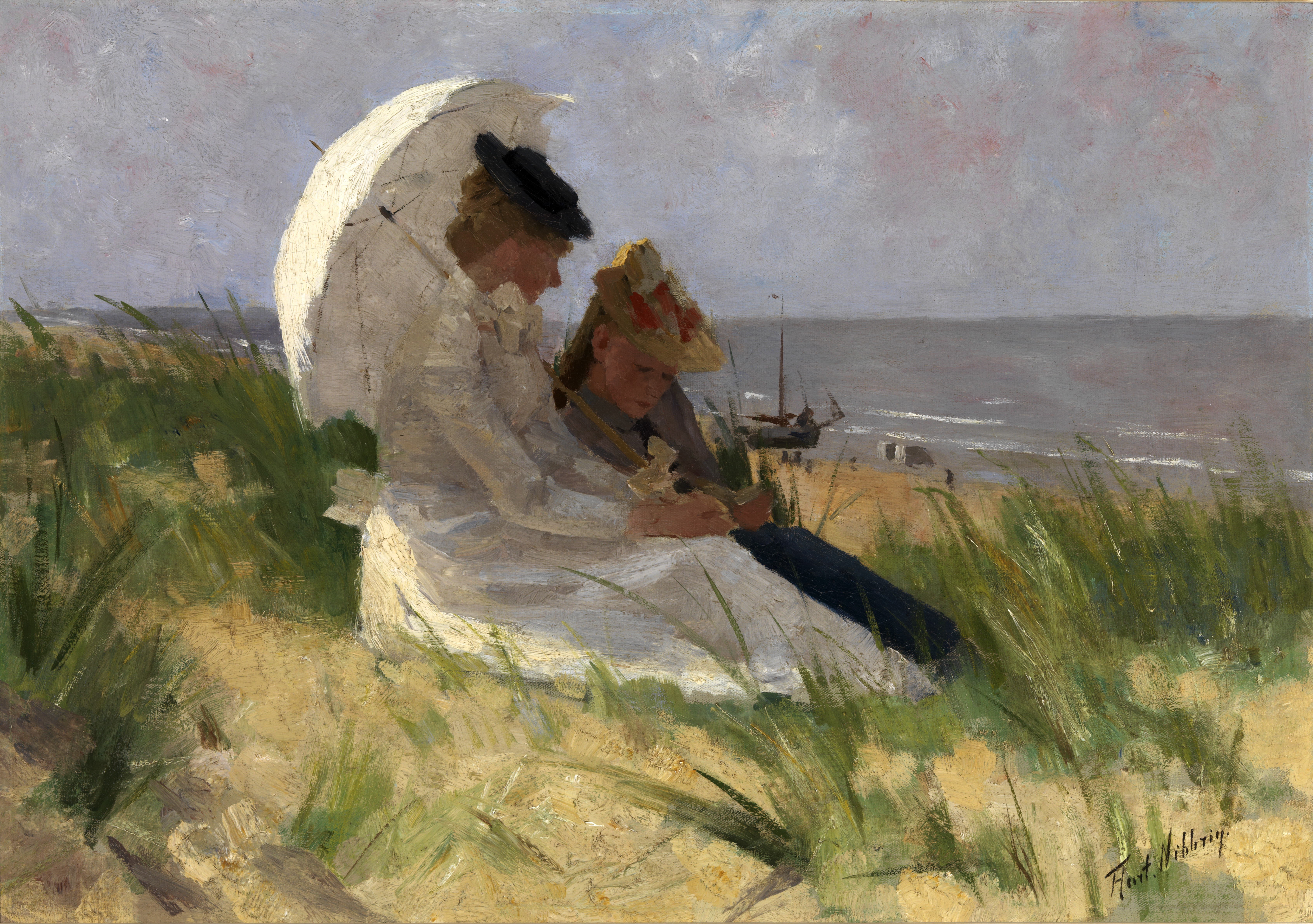 In de benedenzaal, die het thema ‘Impressie’ behandeld, is het een feest van grote namen, vooral uit de negentiende eeuw. Mooi, van Hart Nibbrig, ‘Op de duinen in Zandvoort’ (ca. 1892). Net als bij de veel beroemdere franse impressionisten is Hart Nibbrig erin geslaagd de stemming van een moment perfect vast te leggen.