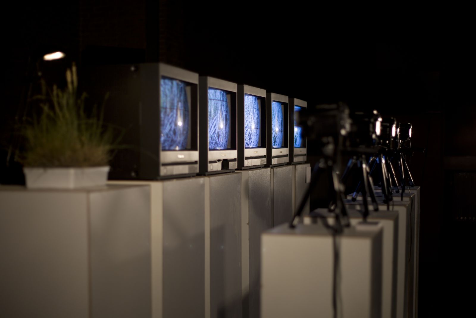 Bijna een Dürer toont Jet Smits in haar afstudeerproject voor de Akademie voor Kunst en Vormgeving St.Joost Breda. In haar installatie Recycle (work in progress) toont zij een schaal met daarin niet meer dan een graszode uit de berm. Een camera filmt dit stukje natuur en de beelden worden getoond op een scherm. Een tweede camera neemt vervolgens de beelden van dit scherm op en vertoont die op een tweede scherm. Op het vijfde scherm uit de reeks is niet meer dan microscopisch gewriemel te zien. Dat kan aan de kwaliteit van de techniek liggen (suggereer ik als volslagen niet deskundig op dit vlak). Maar Jet Smits heeft er een mooi verhaal bij: “Ik vond het interessant om iets uit de natuur te halen en dat in een digitale omgeving te stoppen en dan te kijken wat ermee gebeurt. Er vormt zich een heel andere wereld puur doordat je het filmt en steeds weer kopieert.”