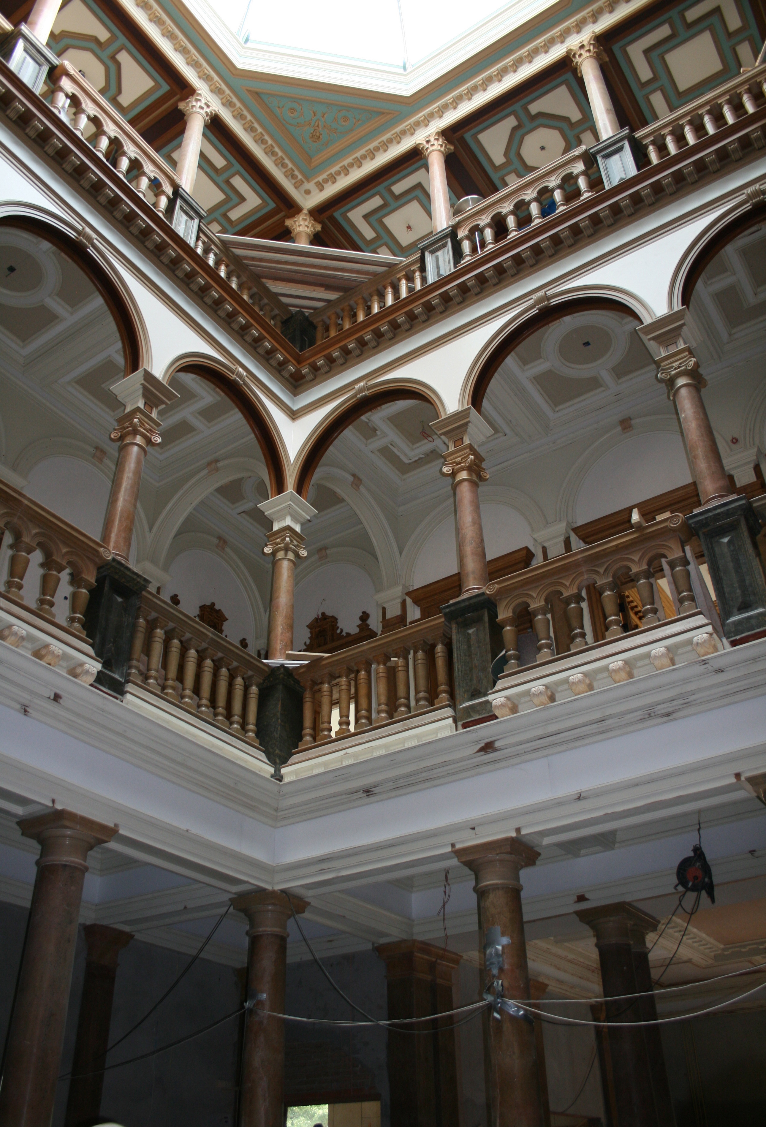 Luigi Prins, die het Grote Huis in erfpacht heeft, besloot op basis van de tekeningen en stalen die bij erfgenamen van de laatste eigenaren zijn teruggevonden, het interieur alsnog te realiseren. Hij verscheepte inlands eiken om massieve deuren en de bijbehorende bovenstukken in China te laten beeldhouwen. Ook uit China komen de zuilen die de centrale open ruimte omlijsten.