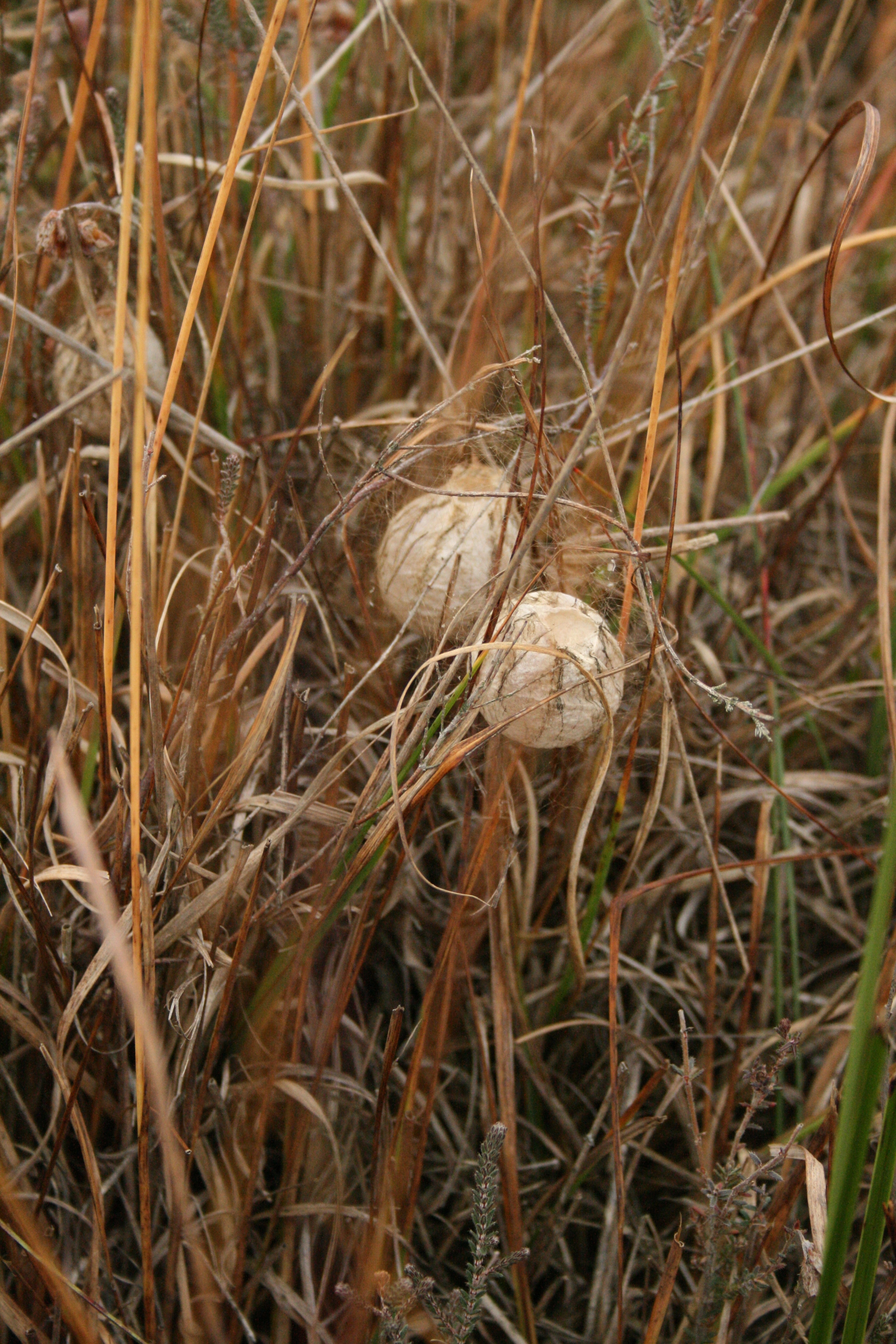 Ik vond ook nog de eicocons van de tijgerspin, oorspronkelijk uit het Middellandse zeegebied maar nu in heel Nederland gezien. Wikipedia meldt over deze gasten: “Het mannetje van deze soort kan hooguit twee keer paren omdat hij bij het paren één van zijn twee genitaliën in het vrouwtje laat zitten”. Nou lekker is dat. Maar eigenlijk hoeven we ons geen zorgen te maken over het gehandicapte bestaan van de spinnenman: “Hij wordt na de paring vrijwel altijd ingesponnen en later opgegeten door het vrouwtje zodat een tweede paring eerder uitzonderlijk is.”