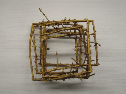 Een spiraal van egelantierroos (in brons gegoten) vind ik bijzonder mooi. De vervaarlijke doorns spiralen langs de stengel die op zijn beurt door de kunstenaar in een gesloten spiraal gevlochten is. De tak krijgt de vorm van een eeuwige rondgang, zoals we die kennen van de beroemde afbeeldingen van de slang die in zijn staart bijt. De kunstenaar bedient zich hier van een oeroud symbool maar dat teken verwijst wel naar de natuur zelf terug. Wörlag waarschuwt, met Goethe: “ Men moge toch vooral niets achter de verschijnselen zoeken, zij zelf zijn de leer.”