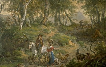 De wanden van de blauwe zaal in het Geelvinckhuis in Amsterdam zijn bespannen met behangselschilderingen gemaakt door Egbert van Drielst. Ze tonen ons het door de achttiende-eeuwse stedeling gedroomde harmonieuze bestaan op het platteland; een Hollands Arcadië met lommerrijke partijen, vette weiden, heldere beekjes en tevreden herders. Terwijl ik de bomen van Van Drielst bestudeerde, sprak de oud-stagiair met wie ik er was en die wel van een grapje houdt, twee woorden: Bob Ross.