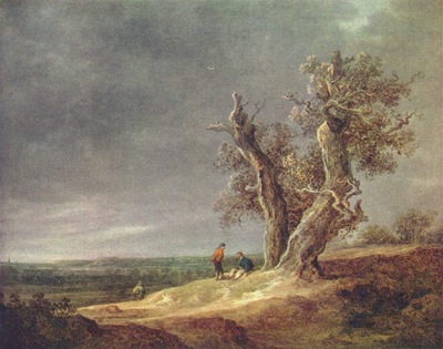 En nu het hoge woord eruit, hij is ook awful! Gewoonweg verschrikkelijk. Uiteraard, het is fascinerend dat iemand zo snel een landschap kan suggereren. Dat vonden we in de zeventiende eeuw ook al. In 1678 beschrijft Samuel van Hoogstraeten in zijn Hooge schoole der Schilderkonst hoe drie schilders een wedstrijd hielden om in één dag een landschap te schilderen. Een van hen was Jan van Goyen, legendarisch vanwege zijn enorme productie van landschappen. En hij schilderde óók snel, en net als Bob Ross ook in een nat-in-nat techniek (dan hoef je niet te wachten tot de verf droogt). En hij maakte óók heel slim gebruik van een grondlaag die, voor het echte werk begint, op het doek wordt aangebracht. Maar dan, to separate the boys from the men: een landschap van Van Goyen kun je ín. Bij Ross blijft het landschap hartstikke vlak of is er hooguit één opening naar een achtergrond.