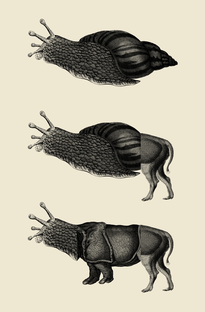 Uli Westphal speelt op schermen met een truc die je wel kent uit ouderwetse prentenboeken waarbij alle bladzijden bestaan uit drie delen die je afzonderlijk kunt omslaan. Alle bovenste delen zijn bijvoorbeeld hoofden, dan een middengedeelte met rompen en tenslotte benen en voeten. Wie door het boek bladert kan schier eindeloze combinaties maken en zo zelf fantasiewezens tevoorschijn toveren. Bij de drie schermen van Westphal zitten knoppen zodat je in feite digitaal bladert.