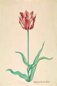 Teylers toont twee tulpen, een van Johannes Bronckhorst en een van zijn leerling Herman Henstenburg. Het zijn bladen uit zogenoemde tulpenboeken, een soort luxe reclamebrochures waarmee de bollenhandelaren hun waar aan de man brachten. De tulpen zelf zaten bij het verhandelen tussen september en mei nog in de grond. De koper zegde op basis van een tekening of prent een betaling toe die pas geschiedde als de bollen gerooid waren. Dat zal af en toe best teleurstellend hebben uitgepakt: van de kostbaarste tulp, de rood en wit gevlamde, is de schoonheid niet genetisch bepaald en deze wordt dus ook niet doorgegeven. Ze ontstaat door een virus. De in het verleden behaalde resultaten waren geen garantie voor de toekomstige tulpen. De tekeningen in Teylers worden zonder veel achtergrondinformatie getoond. Hierdoor blijft het allemaal wel wat anekdotisch. Het zou bij de landschappen best nuttig zijn iets meer te vertellen. Over de al dan niet topgrafisch correcte weergaven bijvoorbeeld of over hoe de kunstenaar echt naar buiten trok en wat hij verder in zijn atelier toevoegde of idealiseerde. Of wat het betekent als iets ‘naer het leven’ getekend is.