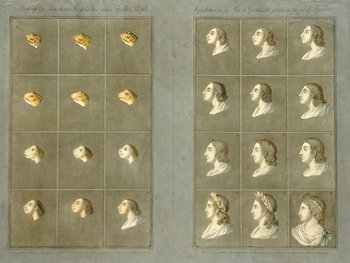 Voor mijn wildernisstukje wil ik aandacht besteden aan de ideeën van Johann Caspar Lavater (1741-1801). Daarvan wist ik al, uit een secundaire, Engelse bron, dat die eind achttiende, begin negentiende eeuw ‘immens populair’ waren. Zijn werk is samengevat in een beroemde prent waarop je in opeenvolgende stadia een kikker (de laagste levensvorm naar Lavaters idee) ziet veranderen in de Apollo Belvedere (een bijna ideaal beeld van de mens, gebaseerd op een klassiek Griekse sculptuur). Lavater lijkt nu wat lachwekkend met zijn gelaatkunde, de ‘wetenschap’ dat het karakter of de ziel van een mens is af te leiden uit zijn uiterlijk, maar zijn ideeën werkten lang door in de negentiende eeuw.