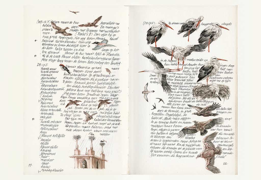 Niet dat Vos niet ‘gewoon’ een vogel kon tekenen. Dat kon hij als de beste. Kijk maar naar zijn schetsboeken die hij bijhield op vogelexcursies.