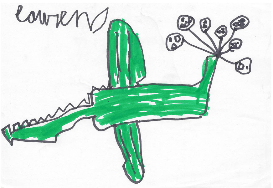 Volgens Laurens is dit zevenkoppig ‘iets’, “heus wel een draak”. Zijn moeder, fauna ecoloog Meta Rijks heeft als favoriet fantasiedier de Heffalump uit Winnie the Pooh.