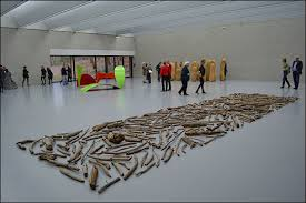 Later maakte Long ook ‘gewoon’ kunst die materieel aanwezig is. Stenen cirkels en banen bijvoorbeeld op de vloer van het museum, zoals in De Pont in Tilburg. Kröller-Müller toont zijn prachtige ‘Wood Line’ uit 1979. Het is duidelijk de publieksfavoriet en op sommige dagen kunnen kinderen er zelf aan de slag om hun eigen Long te maken: dozen met takken en de aanwijzing ‘de takken mogen elkaar nergens raken’ en ze kunnen los. Dan zie je dat Wood Line niet iets is ‘dat je kleine zusje ook kan’. Richard Long, conceptueel? Of juist concreet? In ieder geval ‘constig geschikt’.