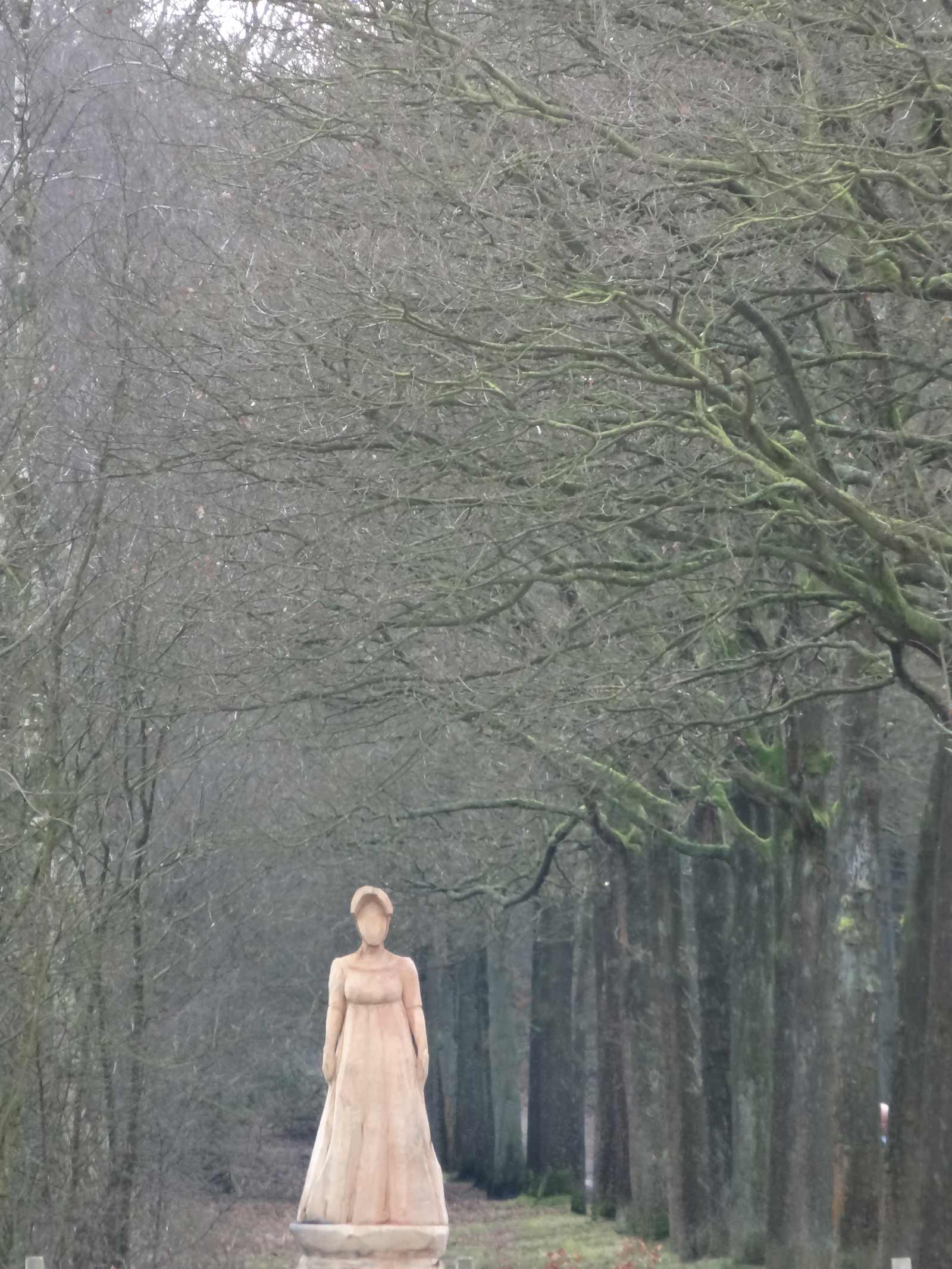 Ondertussen heeft Gert een naam opgebouwd als carver, iemand die beelden maakt met de kettingzaag. En niet zo’n beetje naam: hij heeft verschillende kampioenschappen gewonnen en krijgt regelmatig opdrachten. Zo leverde hij recent zijn beelden op voor het Baarnse Bos. Rond de Grote Kom staan vier houten sokkels, op drie ervan staat een vrouwenfiguur in een historisch kostuum. Dat is heel passend hier, het Bos was immers wandelpark voor de elite -ooit fungeerde het zelfs als ‘overtuin’ van Soestdijk. De sculpturen zijn nu nog blank, wit haast en ze doemen fraai op tegen de achtergrond van een donkere laan. Ze doen me denken aan al die tuinsieraden die in de achttiende eeuw ook hier gestaan hebben.