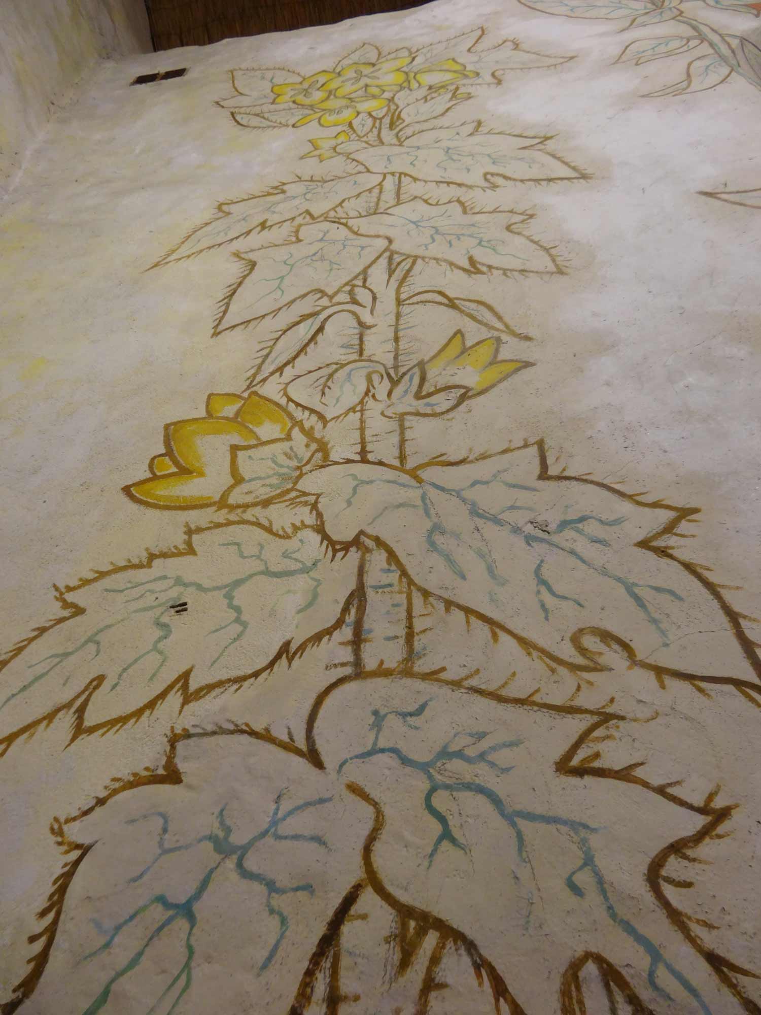 dat hij zieken kon genezen met planten. In de twaalfde eeuw maakte de kapel deel uit van een leprakolonie waar men de heilige aanriep, en medicinale planten verbouwde. Cocteau werd in de jaren vijftig gevraagd de kapel te decoreren. Hij koos ervoor om geneeskrachtige planten metershoog af te beelden. Je zier er bilzekruid, belladonna, valeriaan, heemst, goudsbloem, ranonkel, herfsttijlloos en blauwe monnikskap. De kapel is piepklein en je voelt je er haast opgenomen in de florale wereld. Cocteau schreef: “Opium is de enige plantaardige substantie die ons in contact brengt met de plantaardige staat. daardoor krijgen we een indruk van dat andere tempo der planten.” Buiten de kapel is een medicinale tuin gereconstrueerd. Inderdaad, met papavers.