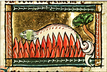 De vuursalamander heeft iets mythisch. Al sinds Aristoteles wordt het verhaal verteld dat hij tegen vuur kan. In Jacob van Maerlants Der naturen Bloeme (het zesde deel is aan ‘serpenten’ gewijd) uit circa 1270, is hij nog giftiger dan welke slang ook. Komt dat allemaal door die heftige kleuren? -hij kan wel gif afscheiden via zijn huid, maar je kunt het dier toch met geen mogelijkheid gevaarlijk noemen.