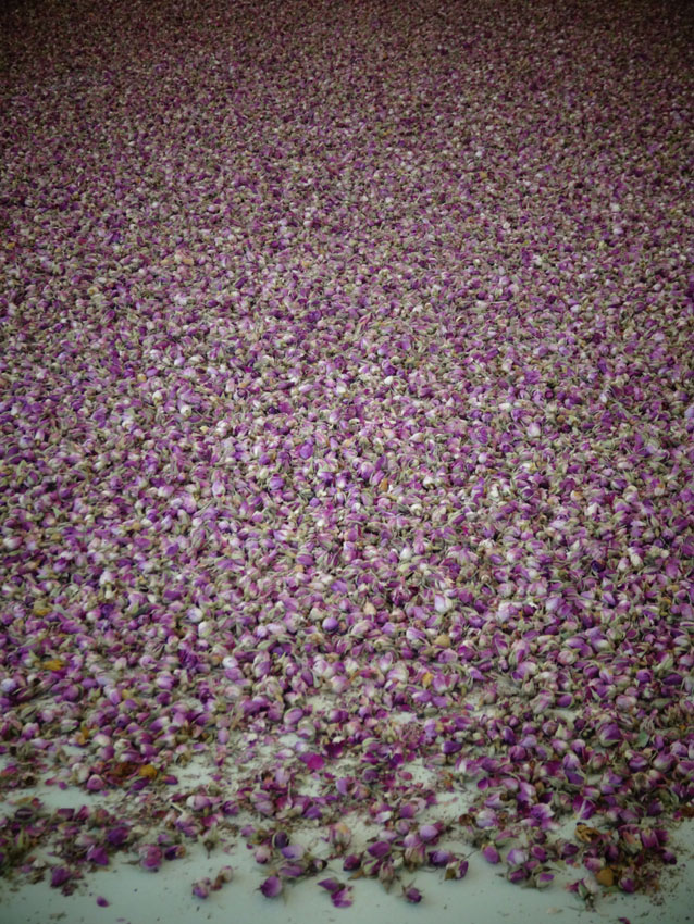 Om de natuur als kunst te tonen, grijpt de vries nauwelijks in. Maar hij is zich er wel van bewust dat zelfs die minimale handelingen de boel al veranderen. In een schitterende zaal in Schiedam ligt de vloer bezaaid met rozenknoppen. De geur is heel sterk. Importeerde de vries damascener rozen uit de parfumindustrie? Voegde hij een zuivere olie toe? Hij opent de ervaring van ‘roos’ voor de bezoeker. Ik ga er helemaal in op. En dan, ik móet een selfie van mijn rozenbelevenis. Ik weet, de herinnering is niet de ervaring, maar toch.