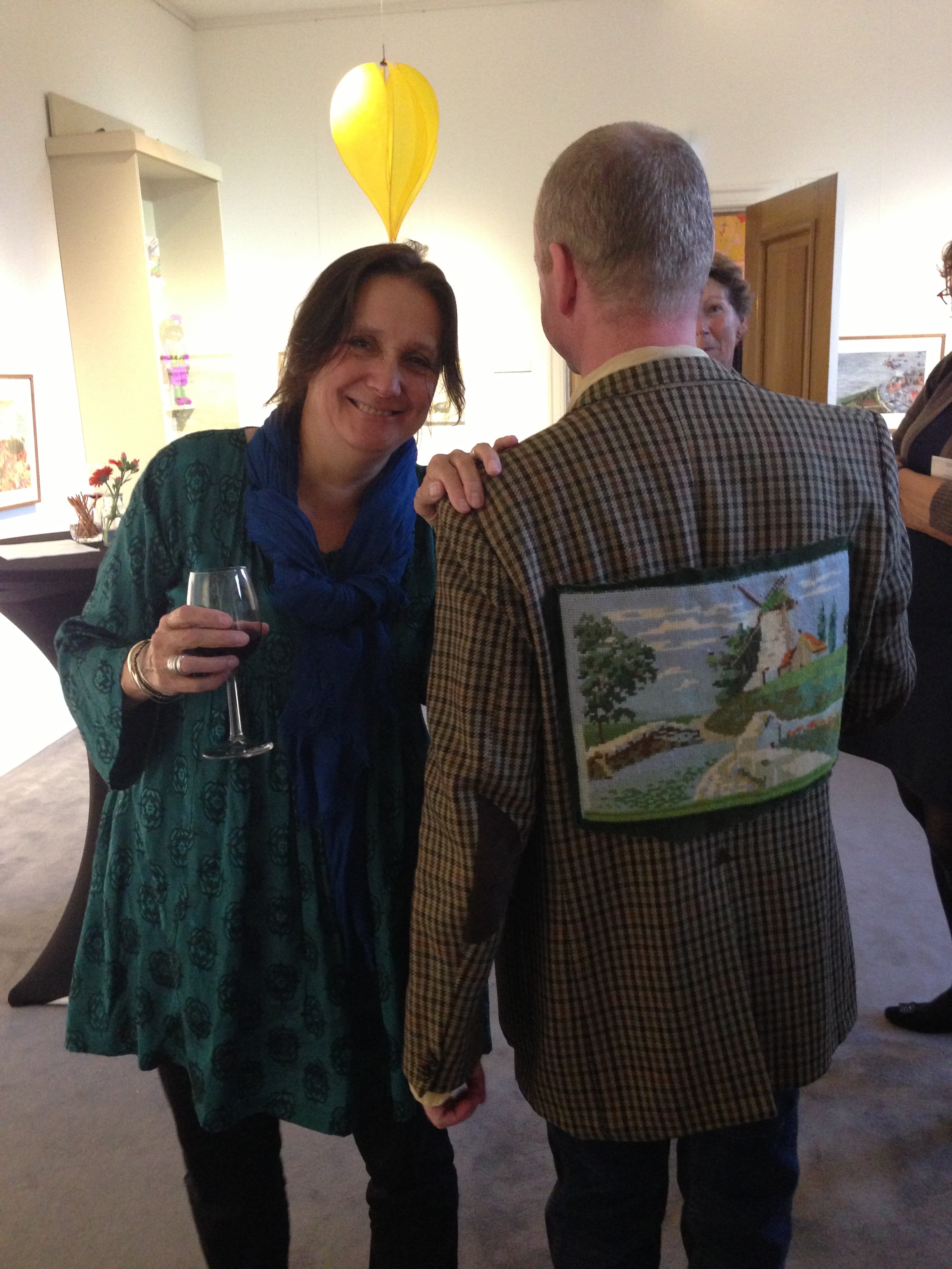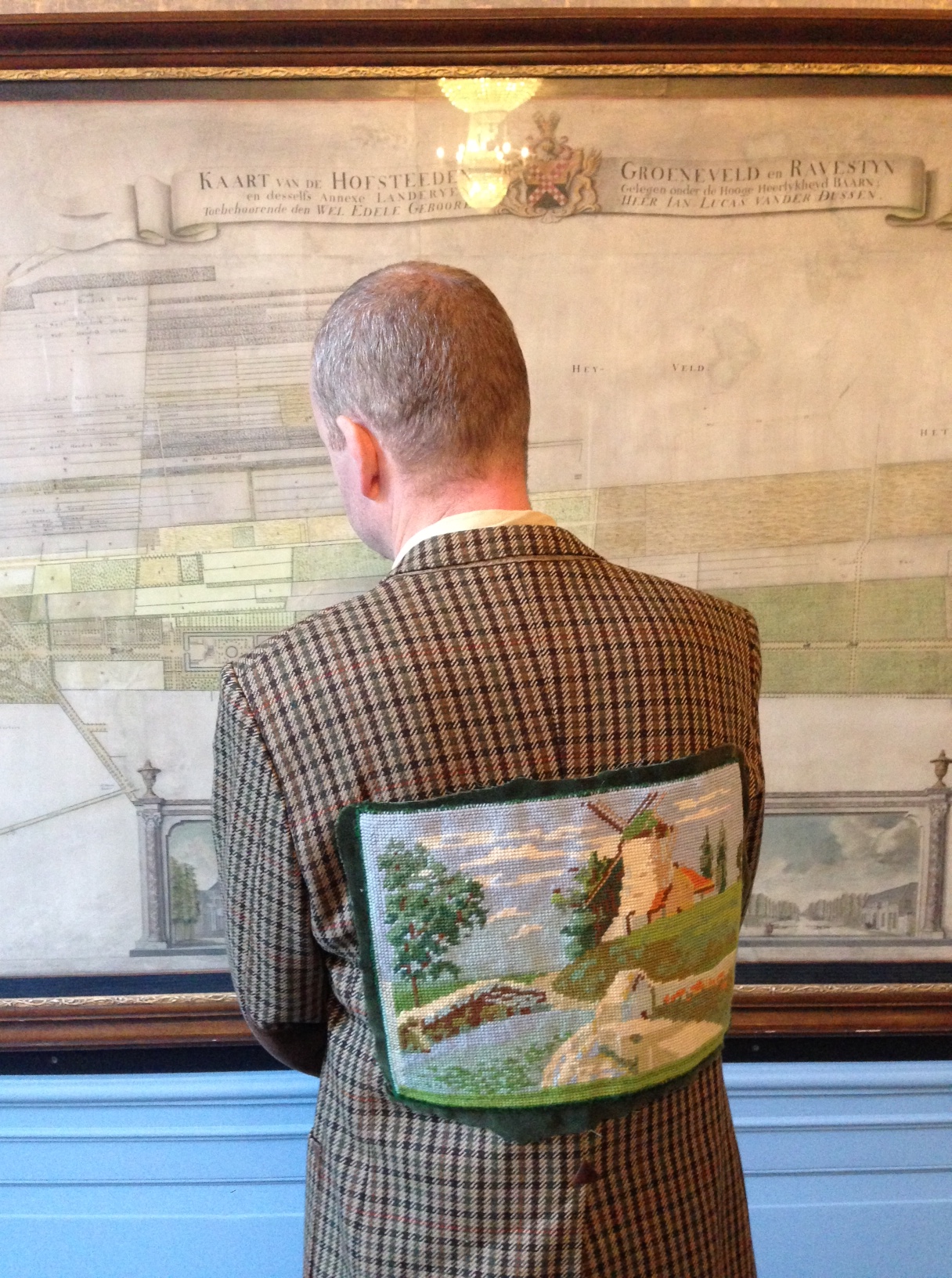 Ik trok naar Kasteel Groeneveld. Daar zijn nu de orginele platen van Charlotte Dematons te zien op de tentoonstelling Nederland is een Feest! Ik ben fan en vond dat de kunstenares een klein eerbetoon verdiende. Haha, gasten dachten dat ik die molen zelf bijelkaar geborduurd had én dat die ook nog terug te vinden zou zijn op een van de kunstwerken van Dematons. Sorry, zo mooi is het niet.