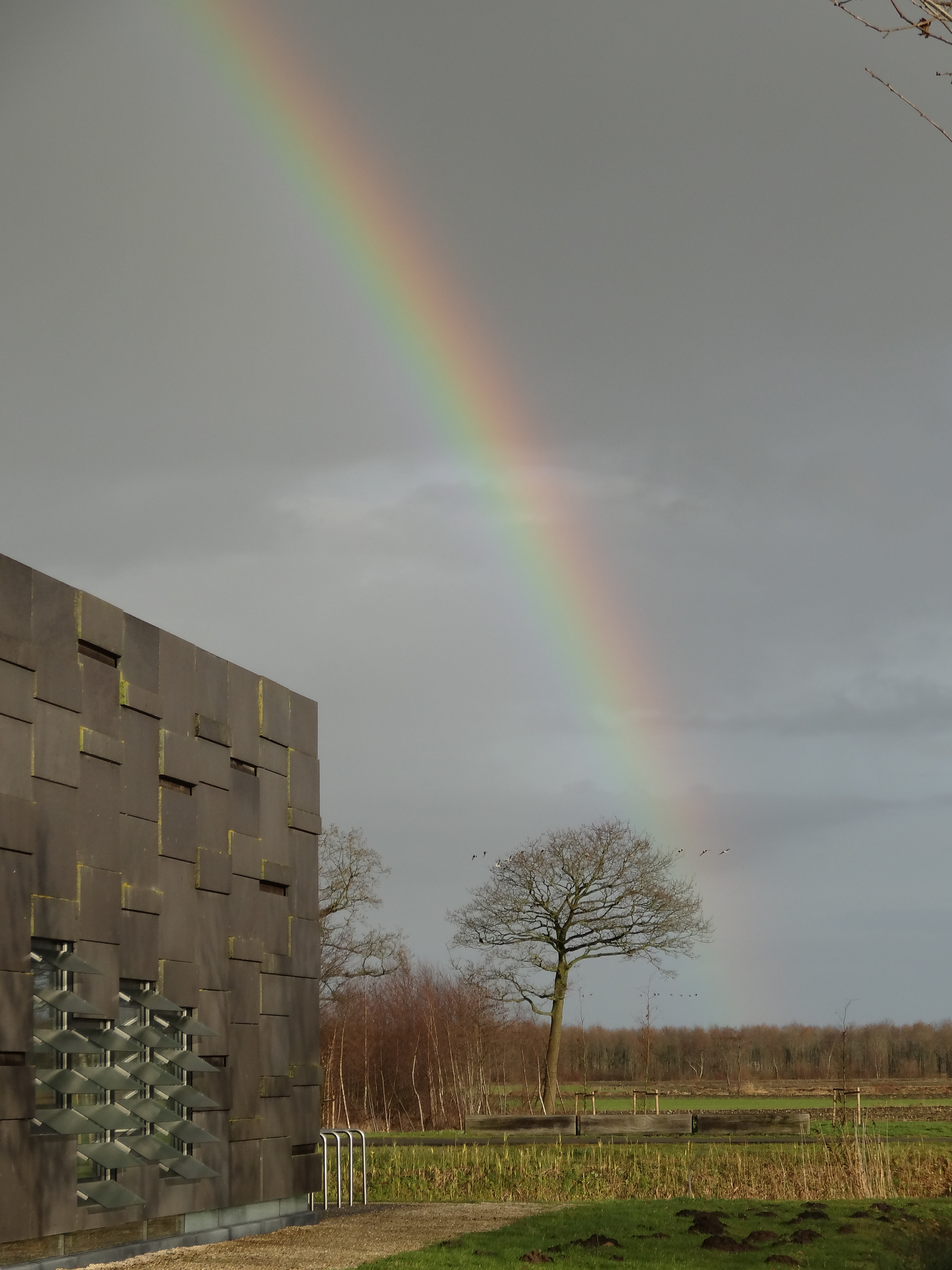 Al eerder schreef ik over de verlenging van het grand canal en het museum dat ervoverheen gelegd werd -en hoe fraai dat na tien jaar allemaal wordt. Dat de natuur de boel een beetje zou vergroenen, met korstmossen of zelfs varentjes was al bij het ontwerp bedacht. Maar hoe zit het bij de buren? Ik ben er nogal van geschrokken. Veel paden zijn modderig en sleets, en de ‘kasteelwoningen’ met hun zwanen worden niet mooi oud. Alsof die beesten aan nestbevuiling doen, lopen er treurige strepen langs de muren. Daar woon je dan in een grapje van de architect. Tot twee keer toe stopt een auto en wordt me gevraagd ‘of ik ergens naar toe