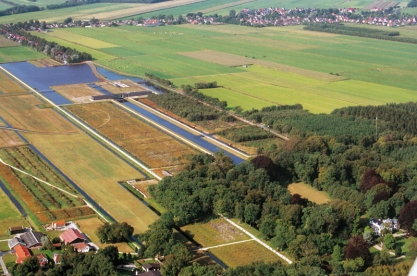 Op de luchtfoto van iets minder dan tien jaar geleden is de nullijn goed te zien omdat het bosvak toen nog niet ingeplant was. Naar links zet de lijn zich voort, Skoatterwâld in.