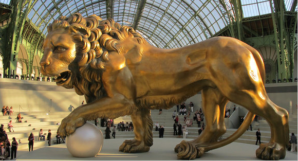 Voor de Chanel herfst-/wintercollectie 2010 liet ontwerper Karl Lagerfeld een 18 meter hoge leeuw bouwen. Het beest, één voorpoot rustend op een parel, paste met gemak in het immense Parijse Grand Palais. De leeuw functioneerde als een soort center piece, uit de parel kwamen de modellen het plankier op. In 2013 zien we de leeuw weer terug bij het modehuis. Lagerfeld lanceert onder de noemer Inside Chanel een twaalftal (nogal snoeverige) filmpjes die zoiets als de kernwaarden van het huis tonen. Maar de filmleeuw is oogstrelend.
