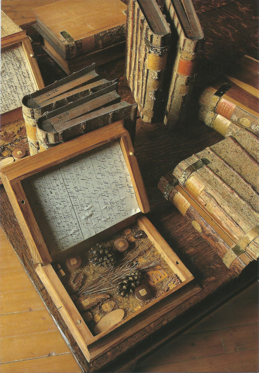 Een xylotheek is een houtverzameling, maar dat klinkt wat lomp. Specifiek worden er kistjes mee bedoeld die de vorm van een boek hebben. Elk boek is gewijd aan een boomsoort. De rug is meestal beplakt met bast en voorzien van een etiket. Doe je zo’n ‘boekkistje’ open, dan tref je er een vergaarsel aan dat een beeld geeft van de boom buiten: er zijn twijgjes, stukjes van de wortel, vruchten, een zaailing, bloemen en soms een stopflesje met stuifmeel. In de Baarnse boeken zijn ook per boom stukjes houtskool, as, kernhout en rechte en schuine doorsnedes van een tak opgenomen. Het is wel duidelijk: het aanleggen van een xylotheek was een ernstige aangelegenheid.