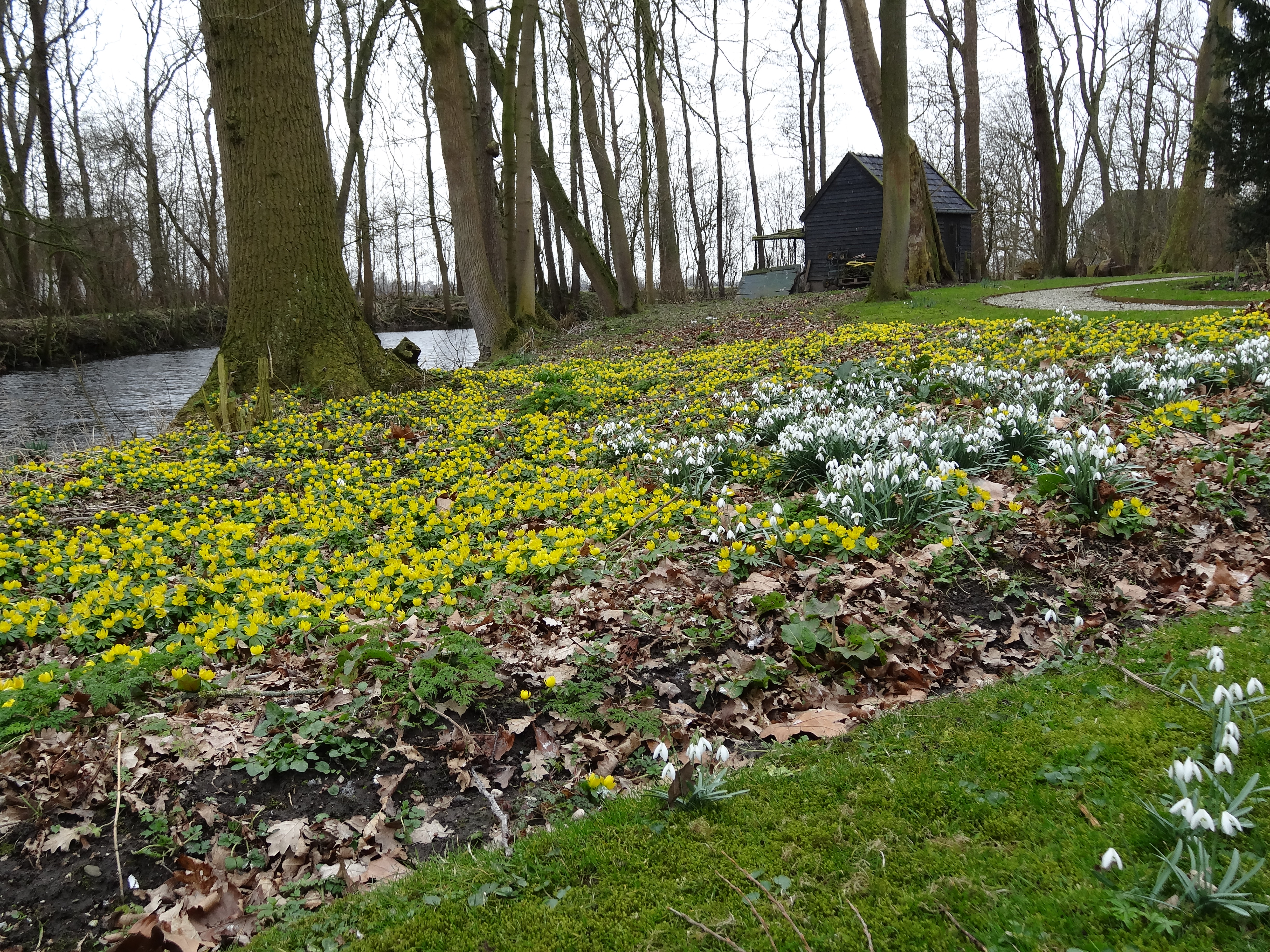 Het voorjaar is geel. En het allermooiste geel is van de winterakonieten. Ik zag ze, hele tapijten, op de Allersmaborg in het Groningse Ezinge. Staatsbosbeheer heeft daar een prachtige boomgaard (met hele zeldzame rassen) en ik had er mijn eerste snoeiles van beheerder Nico Boele. Het werd een feest en ik heb heel veel geleerd. Daarover volgende week meer. En ooit moet ik vertellen van de mooiste boerderij van Staatsbosbeheer, in Maarhuizen. Dat is op het Hogeland en de klei is er echt grijs en rolt over het geploegde land, tot aan de horizon.
