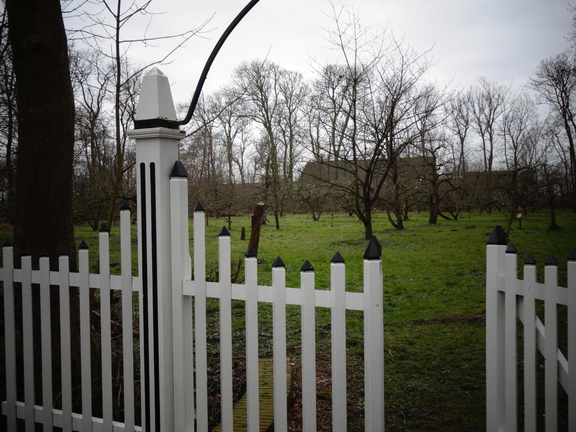 De boomgaard op de borg is prachtig, ook als het niet bloesemt. Boeren gebruikten een fruitweide vaak dubbel: om vruchten uit te oogsten, maar ook om er koeien of schapen te laten grazen. Dat laatste gebeurt hier niet, en er is dan ook een fraaie ondergroei van