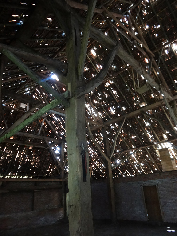 De boerderij is van het kop-hals-romp type. De hals is het oudste deel, de kop is eigenlijk een chic herenhuis uit de negentiende eeuw en de romp bestaat uit twee gigantische schuren. In het woongedeelte stap je een andere tijd binnen. Er zijn bedstedes, monumentale balkenplafonds in de kelders, een schildering boven de schouw, en nou