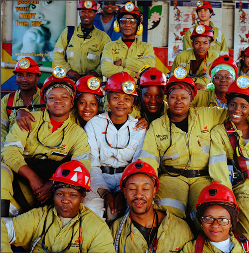 In Heerlen zie ik foto’s van Roger Cremers, wiens grootvader mijnwerker was. Ook hij groeide op met heroïsche verhalen van mijnwerkers, maar hij had er nog nooit een gezien. In 2001 trok hij naar Polen, en later naar de Oekraïne, Zuid-Afrika, Turkije. Overal legde hij mijnwerkers vast. En dat zijn niet de bekende plaatjes geworden van met gruis besmeurde gezichten die breeduit lachen, zoals de Limburgse arbeiders in de jaren vijftig vaak gefotografeerd werden. Ik zie heel wat werkmannen met getekende koppen, verslagen. En hé, lachende vrouwen! Oh, het was slechts hun éérste werkdag en de foto is gemaakt voordat ze ondergronds gingen.