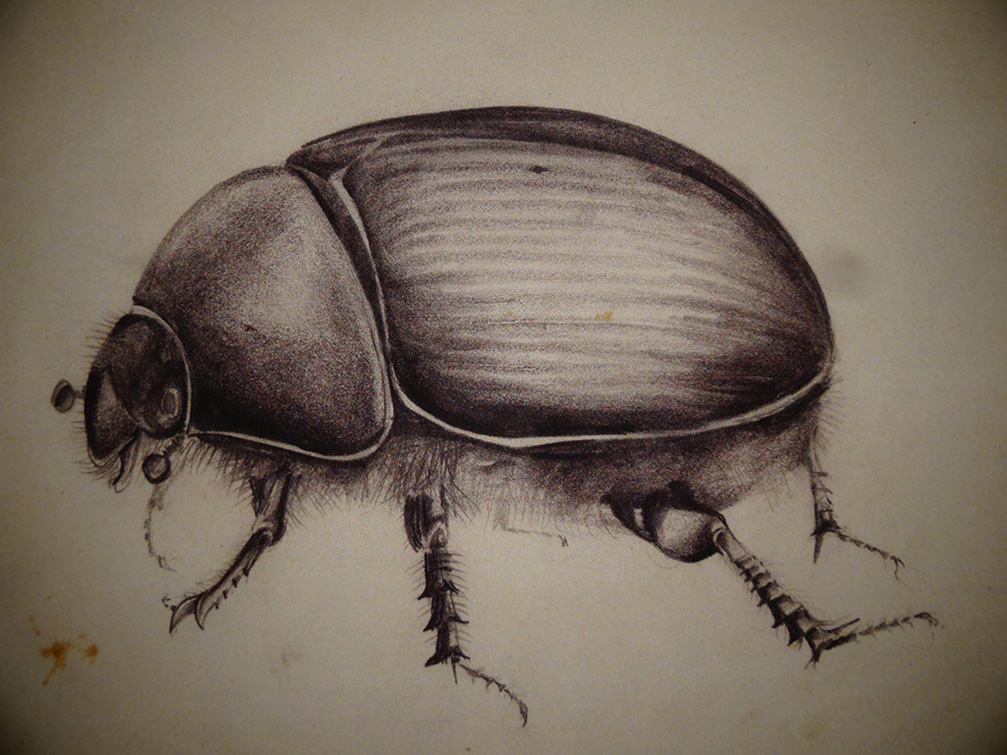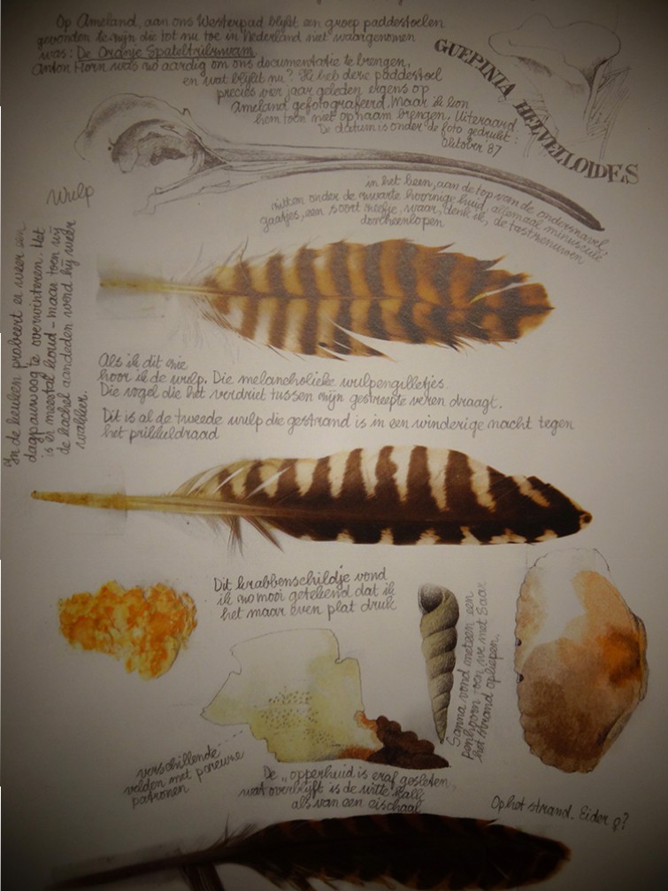 Als klein kind woonde ze in Loenen aan de Vecht. Al haar zintuigen werden gescherpt in de tuin. Ze herinnert zich de geur van buxus, framboos en kruiden, de kleuren van de bloemen en bovenal het kleine gewemel van insecten en vogeltjes. Haar held, en een inspiratie voor het leven, werd Jac.P. Thijsse. Die twee hebben wel wat gemeen, ook Marjolein móet haar liefde voor de natuur delen. En beiden zijn feilloos in hun observaties. Bekijk maar eens een van Marjoleins vroegste tekeningen. Ze zal nauwelijks meer dan acht geweest zijn. Ze zegt hierover: “…kevers, dennenappels, bladeren en andere kleine dingen die ik buiten vond. Ik begon met mijn verfdoosje en een stuk papier en ik dacht: Wat een wonder! Het was mijn manier om de indruk vast te houden van de natuur, waar ik zo van hield.”