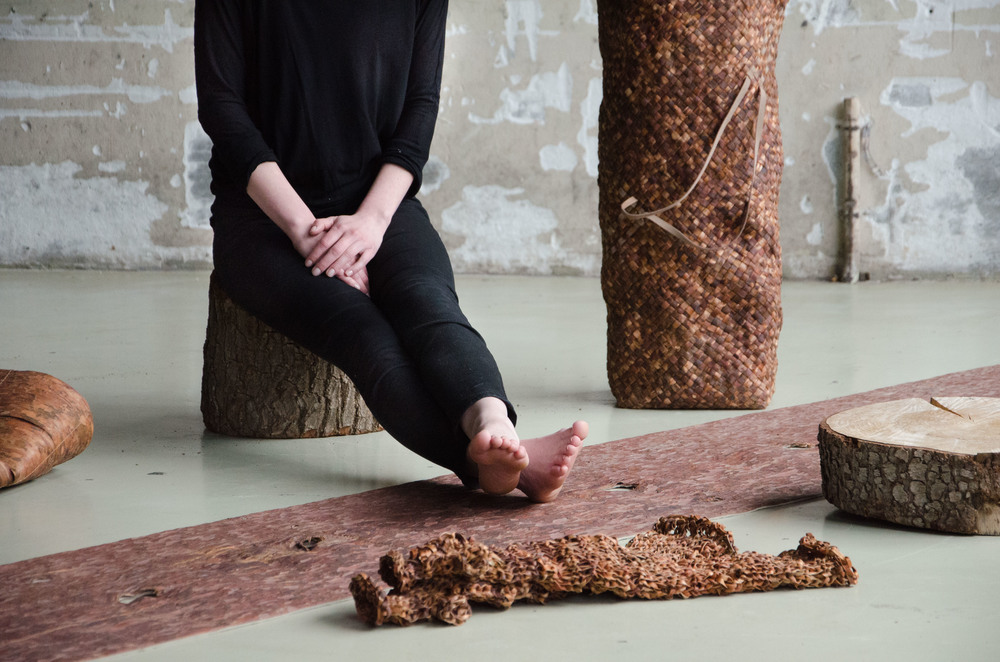 De Letse Sarmite Polakova becijferde dat er in haar geboorteland voor elke inwoner 500 grove dennen zijn. Polakova schreef een verhaal waarin ze fantaseert over hoe het zou zijn als burgers ook echt over die bomen konden beschikken. En alle materiaal dat de bomen leveren, benutten. Dus ook de bast. Hier stapte Polakova uit het verhaal en toog zelf aan de slag. Zij bedacht toepassingen voor de bast, die meestal als restafval eindigt. Vooral de binnenbast blijk je als een soort leer te kunnen gebruiken. Het resultaat is prachtig. Net als Alegria, verdiepte Sarmite zich ook echt in de botanie maar bovenal spreekt er bij beiden liefde voor het materiaal uit het werk.
