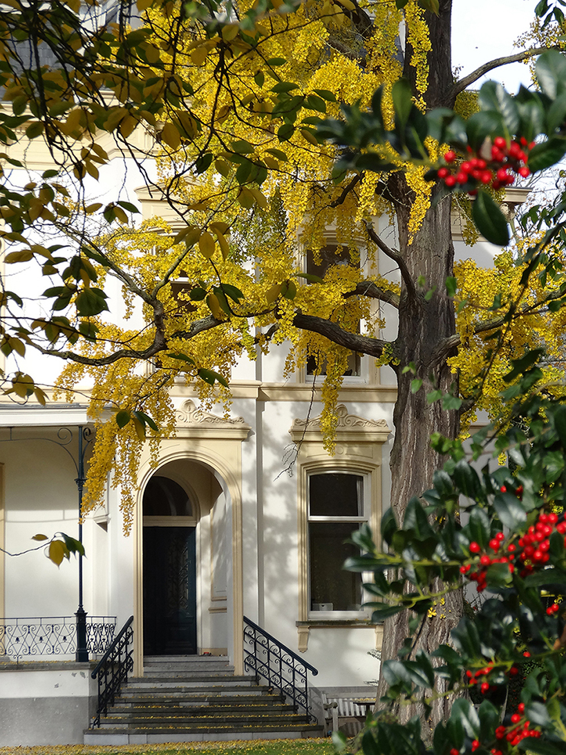 Het Hoogeland is tussen 1824 en 1827 ontworpen door de Vlaamse architect T.F. Sluys en daarna meerdere malen verbouwd. Zoals rond 1932 toen er een verdieping opkwam. Dat vond de nieuwe bewoner nodig. Het was namelijk hoofdkantoor van…Staatsbosbeheer. Dat huisde hier tussen 1919 en 1977. Het park was toen al lang voor iedereen toegankelijk. In 1888 was het stadspark geworden. Ik vraag me weleens af, zouden al die collega’s van toen geweten hebben dat het park ’s avonds dienst deed als h.o.p.? -dat is een homo ontmoetingsplek.