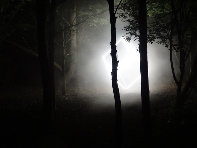 Geland in Almere. Voor één nacht, op 3 juli: Fluorescent Light Cube van Robert Groenewald.