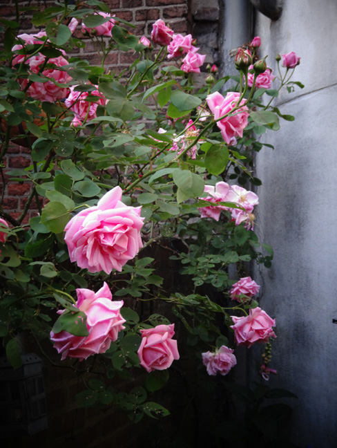 Dit is Mme Caroline Testout. Zij is eco-bio en komt van kwekerij De Bierkreek, al jaren geleden begonnen door oud-Staatsbosbeheerder Hans van Hage. Een flinke luizenplaag in het voorjaar doet haar niks.