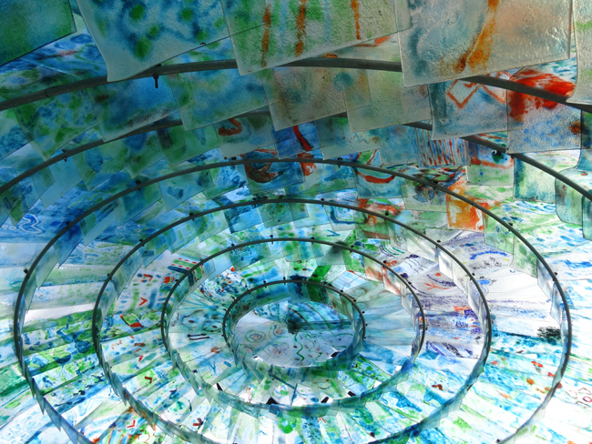 Kunstfort Asperen kreeg een wonderschone koepel ontworpen door Peter van Assche. Scholen en bejaardenhuizen leverden de kunstenaars om de 600 glasplaten te versieren.