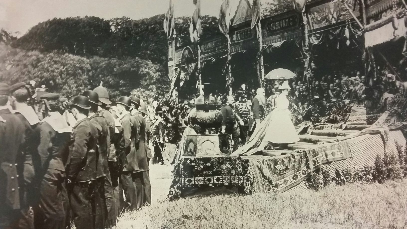 -Koningin-regentes Emma (?) voor de uitreiking van medailles aan de ‘Indische Dapperen’, 1895