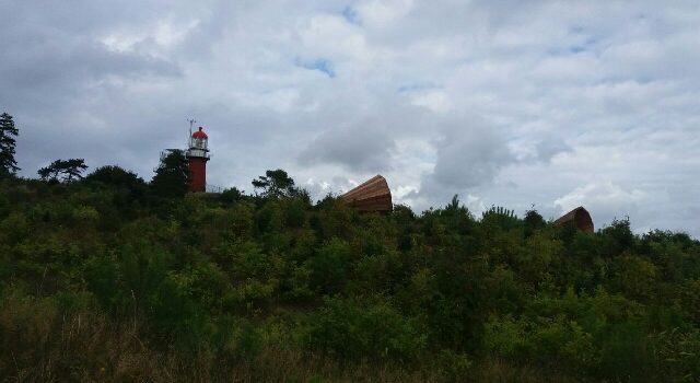 Bij de vuurtoren bloeit de verbascum. Een concurrentie in geel, met de teunisbloem ernaast. De toren is klein. Maar omdat hij op het hoogste duin staat, werkt hij prima. Het uitzicht is niet alleen mooi, het heeft iets beangstigends. In een blik is duidelijk dat Vlieland een smalle strook zand is tussen Noordzee en Waddenzee. Het lijkt veel kwetsbaarder dan op de kaart. Achter de toren staat Ruup. Dat is de naam voor de twee houten megafoons die gebouwd zijn door studenten van de Estse kunstacademie. Het ontwerp is van Birgit Õigus. En die vreemde titel? Ruupor is Ests voor megafoon.