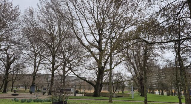 Bij de Bomenstichting? Nou, niet helemaal deze keer. Ik ben niet met iemand van de club op pad, maar ik struinde wat op de site. Daar vind je ook het gedigitaliseerde Bomennieuws en dat is toch een soort schatkamer. Ik stuitte op een kort artikel uit 1997 over De Boom Die Alles Zag. Dat gaat over de grauwe abeel die de Bijlmerramp overleefde en een trefpunt werd voor buurtbewoners die er konden rouwen of hun verhaal vertellen, een plek om foto's en bloemen naartoe te brengen. Ik zocht meer informatie op over de boom en besloot te gaan kijken.