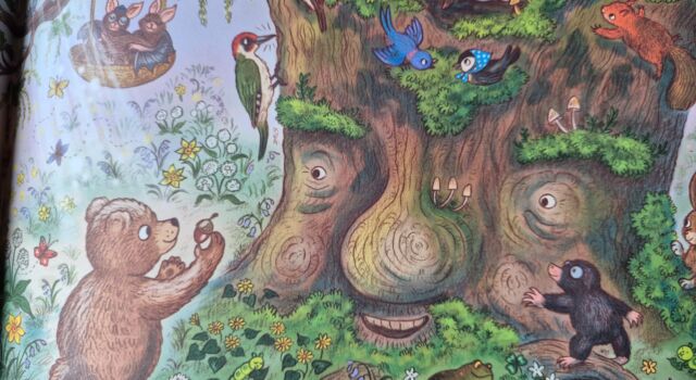 Het bos uit dit boek is uiteraard een fantasie. Dat weet je meteen wanneer de beer met de eik begint te praten. De aanwezigheid van een beer alleen al -volgens recent onderzoek stierf de bruine beer zo’n 1500 jaar geleden uit in Groot-Brittannië. Het mag allemaal in een (kinder)boek: speelgoed dat tot leven komt, tijdreizen, sprekende planten en dieren, mensen die op wonderbaarlijke wijze verkleind worden en avonturen beleven tussen de grashalmen…