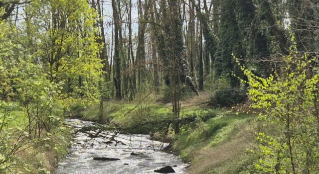 Het pad volgt zo’n beetje de gemeentegrens van Spaubeek en Schinnen en voert over de Geleenbeek. Natuurmonumenten sloeg zelfs een nieuwe brug. Er is op die plek iets, ik weet niet precies waar het aan ligt, maar het doet me mijn hele leven al aan Amerika denken en dan vooral aan het westen van de Verenigde Staten. Te veel cowboyfilms gezien als kind misschien. Ik maakte er een filmpje met mijn telefoon om te laten horen dat het hier niet om een murmelende beek gaat, maar om een kolkend riviertje. Het eindresultaat mocht er niet zijn, de aandacht was niet bij de techniek. Maar evengoed, je ziet daar toch zo een beer die een zalm uit het water slaat?