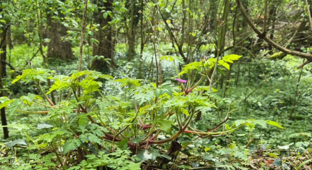 Mooist van al is een compleet landschap in miniatuur dat op een omgevallen boom is ontstaan. De stam is al bijna niet meer te zien; hij is helemaal opgenomen door klimop en mossen. Een deel van zijn hout is vergaan en dat levert genoeg materiaal op voor het robertskruid om zich er te vestigen. Het zal een van de minst zeldzame bosplanten zijn die er bestaan en zij woekert ook vrolijk in tuinen. Daar krijg je haar bijna niet uitgeroeid, maar omdat zij heel los wortelt kun je haar makkelijk uittrekken. Zelfs in mijn kleine stadstuintje verwijder ik met de hand hele bossen van het robertskruid. Waarbij de plant een fantastisch groen en licht bitter parfum afgeeft. Van de oude naam, stinkende ooievaarsbek snap ik niets. Maar dan nu hier. Dat ene roze bloempje in een zee van groen. Het is alsof ik het plantje voor het eerst zie.