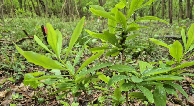 Guido markeerde een aantal exemplaren met verkeerslinten om ze jaar na jaar terug te vinden en te monitoren hoe ze erbij staan. Van voortplanting is nauwelijks sprake en het vermoeden bestaat dat de bosrand en het bos zelf te dicht zijn. Daardoor vinden bestuivers zoals hommels niet meer hun weg naar de boompjes. Een proef bij Natuurmonumenten waarbij het traditionele hakhoutbeheer opnieuw werd toegepast leverde positieve resultaten op. Niet alleen werd het bos opener, ook de strooisellaag, waardoorheen een kiemend plantje zich een weg moet banen, is dan minder dik. Zoals ik al eerder zei: je moet alles in samenhang zien, wil je iets begrijpen van wat een bos eigenlijk is.