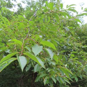Tot slot laat Kees mij een jonge struik zien. Vanwege de goede monitoring door de vrijwilligers is het kiemjaar met zekerheid bekend: 2008. Hij moet hier precies de goede omstandigheden hebben aangetroffen: een ‘verwonde’ bodem om te ontkiemen en daarna relatieve rust. Dat wil bijvoorbeeld zeggen: geen konijnenvraat (Onderzoekers wijzen erop dat elders de eerste kiemsuccessen pas werden aangetroffen na de ineenstorting van de konijnenpopulatie). Maar er is wel iets anders aan de hand. De struik is ontkiemd onder een jonge eik. Hoe kan die jeneverbes dat nou niet weten, dat hij overschaduwd gaat worden? Zo simpel kan ik dat natuurlijk niet zeggen, maar het heeft ermee te maken dat de jeneverbes floreerde in het open landschap aan het eind van de laatste ijstijd. In feite ondervindt hij nu al 10.000 jaar concurrentie van ‘koloniserende’ boomsoorten en de verwachting is dat zijn leefgebied zonder ingrijpen in bos zal veranderen. Dat gebeurde vele honderden jaren niet omdat de mens het heidelandschap open hield, door er schapen te houden, te plaggen en ’te rommelen’. Nu wijst Kees mij op grove den, berk, eik en beuk die zich er spontaan vestigen. De door de mens in de jaren twintig van de vorige eeuw geïntroduceerde Amerikaanse vogelkers zien we opgroeien in een jeneverbesstruik. Als die niet wordt verwijderd zal hij de struik die hem beschermde tegen schapenvraat, overschaduwen. De jeneverbes is aangewezen op onze hulp en zo bekeken is hij een verstekeling van de cultuurhistorie.