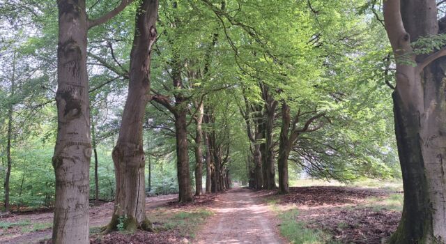 Het Veluwse Hoog Buurlo bestaat uit twee woonhuizen en twee schaapskooien. Sociaal-geograaf Jan-Olaf Tjabringa die er in 2005 een studie over schreef, noemt het geen gehucht of buurtschap, maar een enclave. De meeste bezoekers hier komen voor de schapen (en die zijn ook geweldig), maar ik kom voor de bomen. Om Hoog Buurlo heen loopt namelijk een beukenlaan die ook wel de Ring wordt genoemd. Je kunt dus een rondje Hoog Buurlo doen. Vanuit die rondgang is het overigens makkelijk doorsteken naar de centrale bebouwing, bijvoorbeeld via een statige beukenallee vanaf de parkeerplaats. Passeer je de kooien en vervolg je je weg dan loop je over de oude schapendrift (nog steeds in gebruik), met aan weerszijden ook beuken. Alleen is hier de weg uitgehold door al die schapenpoten die hem betraden. De drift komt uit op de heide en op dat punt heb je de diameter van de Ring afgelegd. Daar kun je dus ook weer kiezen om links of rechts de Ring op te gaan, maar veel mensen gaan voor een van de paden over de heide. En ik moet zeggen: het zicht vanuit het lover van de beuken over de golvende heide beneemt me de adem. Maar ik sla links af en doe een halve Ring.