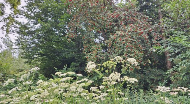 Die randen zijn geweldig. Je loopt er gewoon zo in vanaf de Knardijk bijvoorbeeld, zoals wij doen. Onder en voor de besdragers heeft zich een kruidlaag ontwikkeld waar het nu wemelt van de insecten die de inheemse berenklauw en het koninginnenkruid bezoeken. De lijsterbes is overladen met oranje vruchtjes en daarachter staan jonge en oude populieren. Wat een rijkdom. En ik moet denken aan een uitspraak van houtvester Pieter Boodt (1883-1957) die al in Drenthe en op de Waddeneilanden had gewerkt alvorens hij de leiding kreeg over de groenaanleg in de Wieringermeer: ‘de bijl is het penseel van de landschapsarchitect.’ Wat hij er niet bij zei is dat die bijl door een beheerder met visie gehanteerd moet worden.