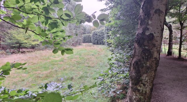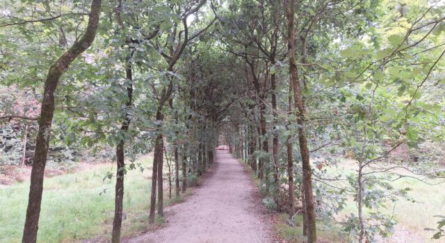 In het Baarnse Bos kun je nog steeds een ‘historische keuze’ maken: wandel je in de schaduw van de loofgang of neem je het lichte Zonnig Laantje dat er min of meer parallel aan loopt. Voor de ervaring doe ik beide. Op deze augustusdag zijn de berceaux een verademing.