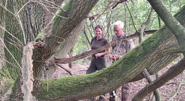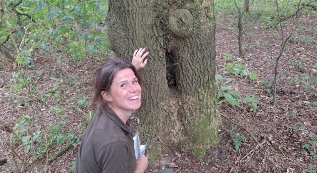 Het is afwachten voor Marit of ‘haar’ eik in het Register komt. Maar hoogstwaarschijnlijk wel. In de auto terug naar het station hebben we het erover hoe zo’n snipper natuur heel waardevol kan zijn. Niet alleen vanwege die ene eik, maar ook omdat er nog veel meer bijzondere bomen staan. En er is nog iets: Marit, relatief nieuw als boswachter, wil haar gebied uiteraard zo goed als kan, leren kennen. Daartoe bekijkt ze ook in haar vrije tijd oude kaarten en bestudeert ze het Actueel Hoogtebestand Nederland, dat toegang geeft tot de digitale hoogtekaart. Met dat materiaal worden sporen die je in het veld in eerste instantie ontgaan toch inzichtelijk. Blijkt dat zich in dat kleine bosje dat we bezochten ook loopgraven en schuttersputjes uit de Tweede Wereldoorlog bevinden. ‘Postzegelnatuur’, zoals kleine terreinen wel genoemd worden, moet je dus nooit zomaar afschrijven. En hoe mooi zou het zijn wanneer alle waarden die in een gebied aanwezig zijn, in één oogopslag inzichtelijk worden voor de beheerder? Dat is een klus voor de toekomst. Voor nu is er het nagenieten van wat we hebben gezien. Marit: ‘Ik hou van bomen en hoe ouder hoe meer ziel erin zit.’
