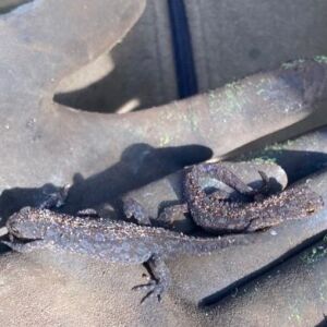 Ik ben zo verwend, dat ik het al haast ga verwachten. En jawel, ook Doreen heeft een verrassing. Even buiten het landgoed weet ze een plek waar er bijna de garantie is dat je een boomkikker ziet. Dat is een zeldzaam dier, maar áls hij er is, dan meestal ook in flinke aantallen. De boomkikker is afhankelijk van ondiepe poelen (zonder vissen, want die vreten de kikkervisjes op). Buiten de paartijd geven ze de voorkeur aan een mantelzoomvegetatie (dus aan een bosrand) met braam. Daar wijst Doreen ze mij aan. En omdat ik na de hazelmuis van vorige week reacties kreeg in de trant van pics or it didn’t happen: Kijk!