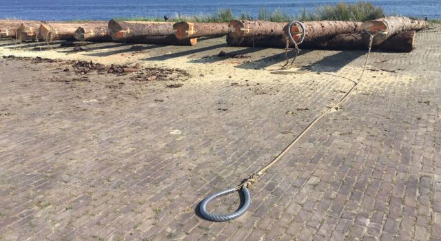 Paul de Kort was ondertussen druk met zijn stammen uit het Kuinderbos. Die waterde hij, waardoor ze verduurzamen (ze krijgen minder haarscheurtjes waardoor ze beter bestand zijn tegen rot bijvoorbeeld). De stammen gebruikt hij om de kraggen te vervangen. Het is nog even spannend; zijn crowdfundcampagne is bijna voorbij. En dan! Dan is er hopelijk weer een kans om die choreografie te zien waarvoor de kunstenaar de lijnen uitzet, maar waarvan de natuur het verloop bepaalt.