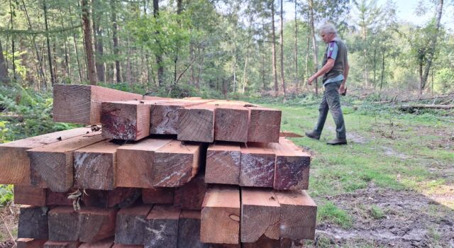 In het Kuinderbos, in de Noordoostpolder, toont boswachter Harco Bergman mij een wel heel uitzonderlijke bestemming van hout uit zijn bossen. Maar voor het zover is, laat hij mij eerst zien hoe hier beheerd wordt.